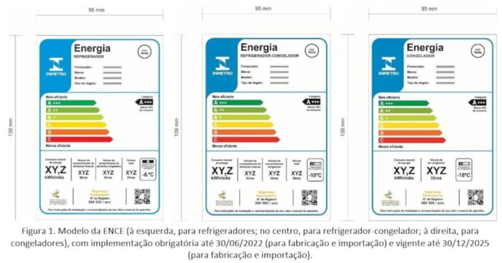 A nova etiqueta para geladeiras introduz as subclasses A+++, A++ e A+ para classificar os modelos que consomem, respectivamente, menos 30%, 20% e 10% de energia do que o tradicional “A”. Com isso, o Inmetro pretende destacar para o consumidor qual o produto que realmente gasta menos energia e incentivar que a indústria adote novas tecnologias em seus produtos, para que se tornem mais eficientes. O comércio varejista tem prazo até 30 de junho de 2023 para continuar vendendo os produtos com a etiqueta antiga. “A gente espera, inclusive, que isso aconteça muito antes da data limite”.